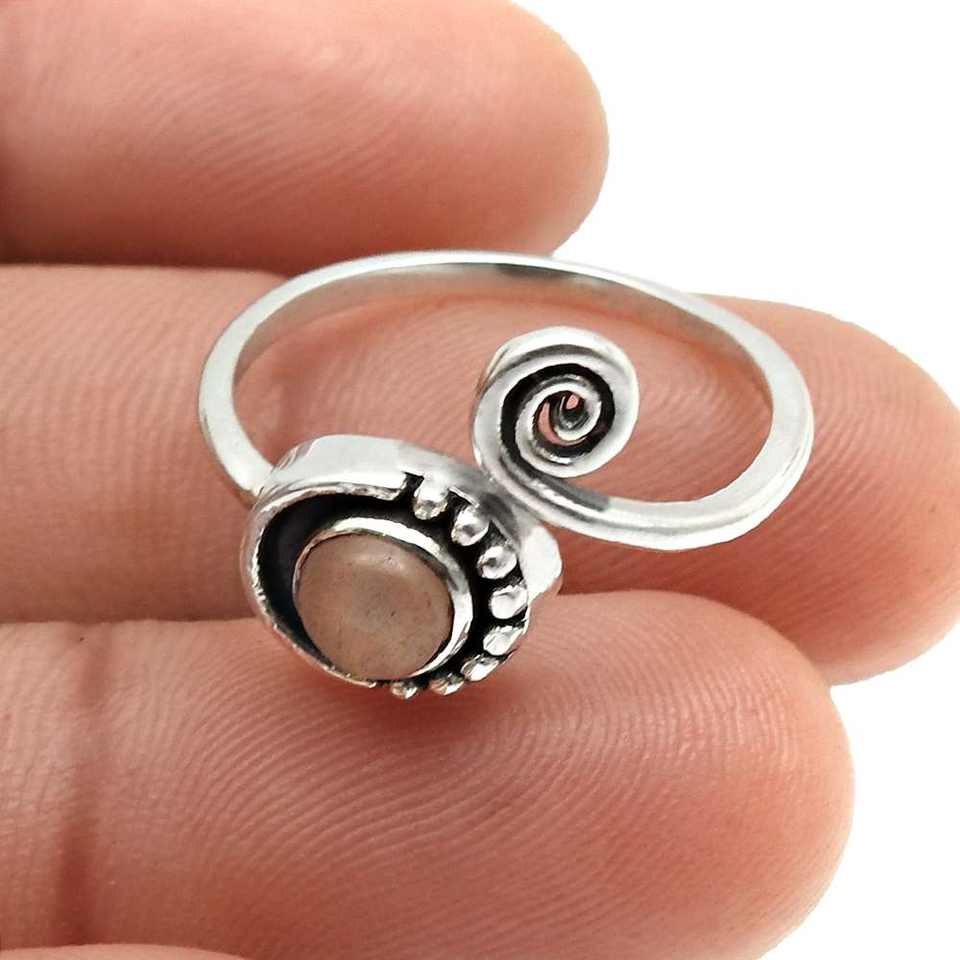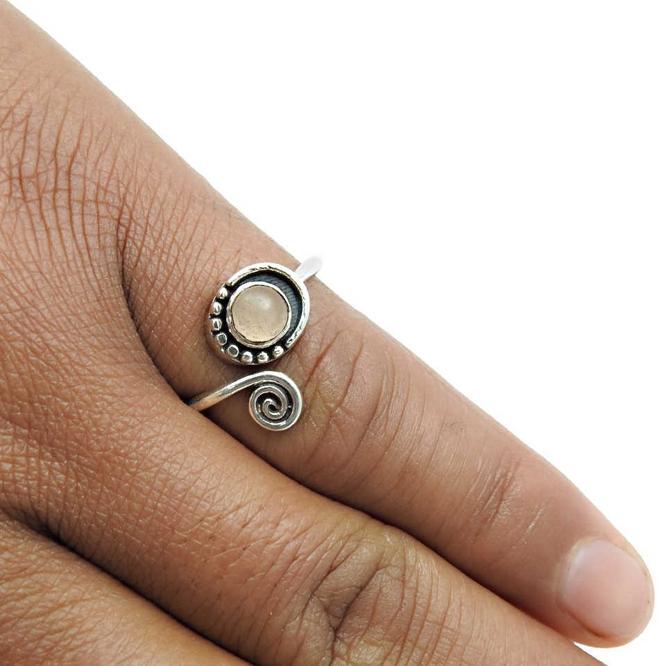 Factory Price Women Silver Ring Crafted From 925 Sterling Silver Bohemian Rings Studded With Round Cut Rose Quartz Gemstone