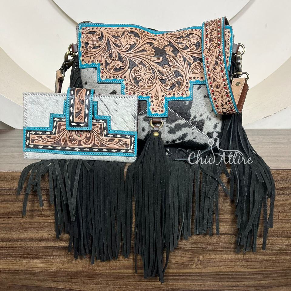 Product name:Hand Tooled Leather Fringe Bag & Cowhide Bifold Wallet