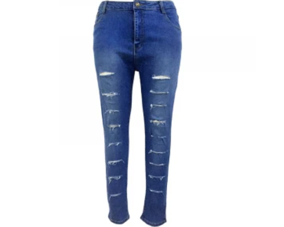 Factory Price Women's Slim Fit Plus Size Jeans Pants Fashion Blue Ripped Hole Tassel Stretch Jeans Trousers for Daily Life Style