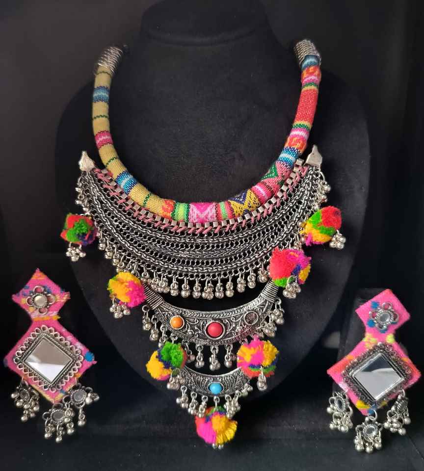Products Name:Handmade Tribal Boho Statement Necklace & Earrings Set
