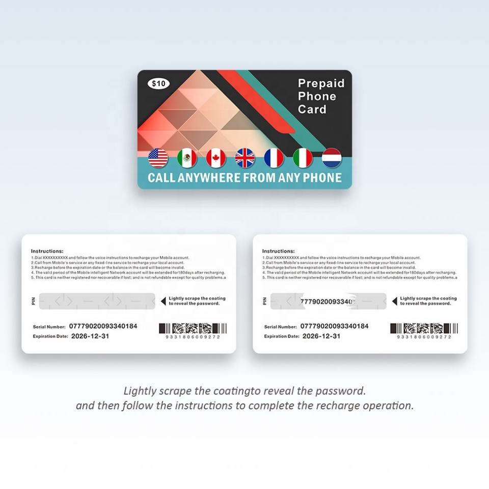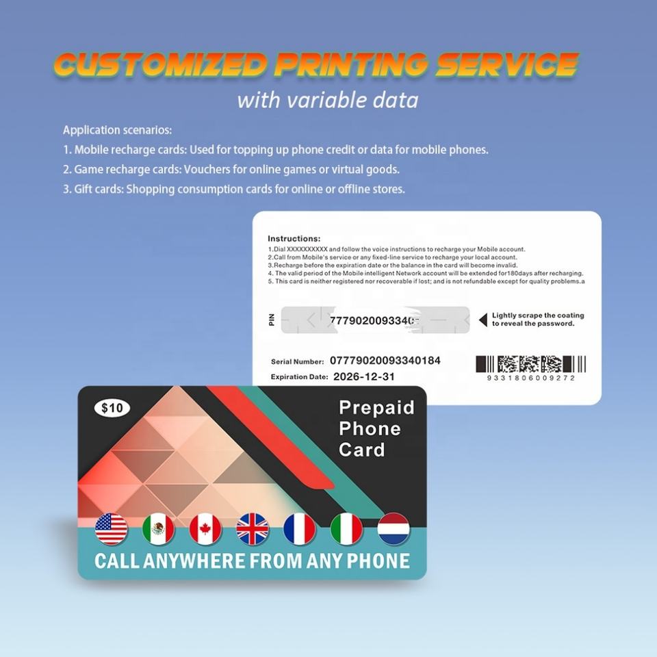 Factory Printing Custom PINs & Values Personalized Mobile Prepaid Top-up Card with Scratch Code Number