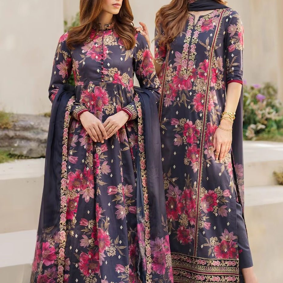 Factory Rate Women's Long Sleeve Fully Embroidered 3 Piece Punjabi Ethnic Lawn Salwar Suits With Duppata Set Women