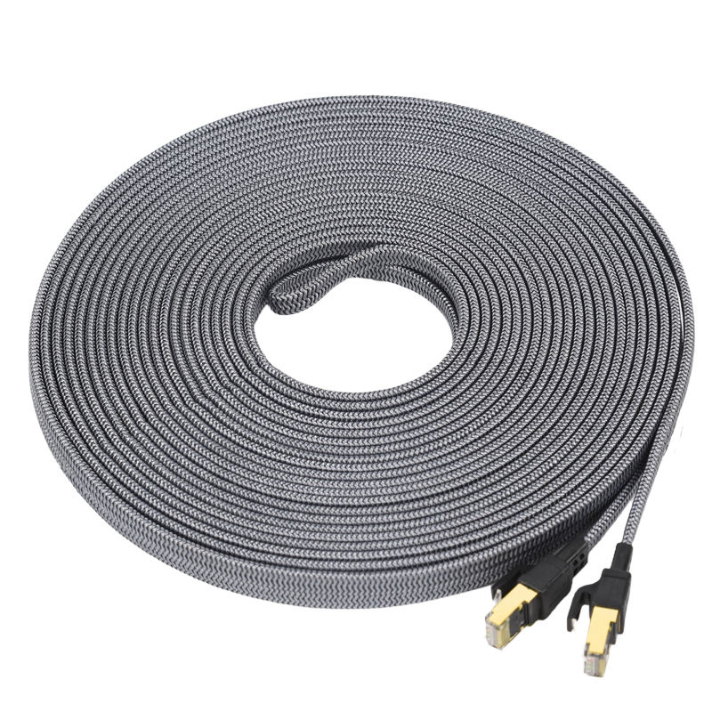 Factory Sale 30AWG Gold-Plated RJ45 Grey Flat CAT8 SFTP Cable with PVC Jacket CAT 8 Ethernet Cable 1M 2M 3M 5M 8M 10M 15M 20M30M