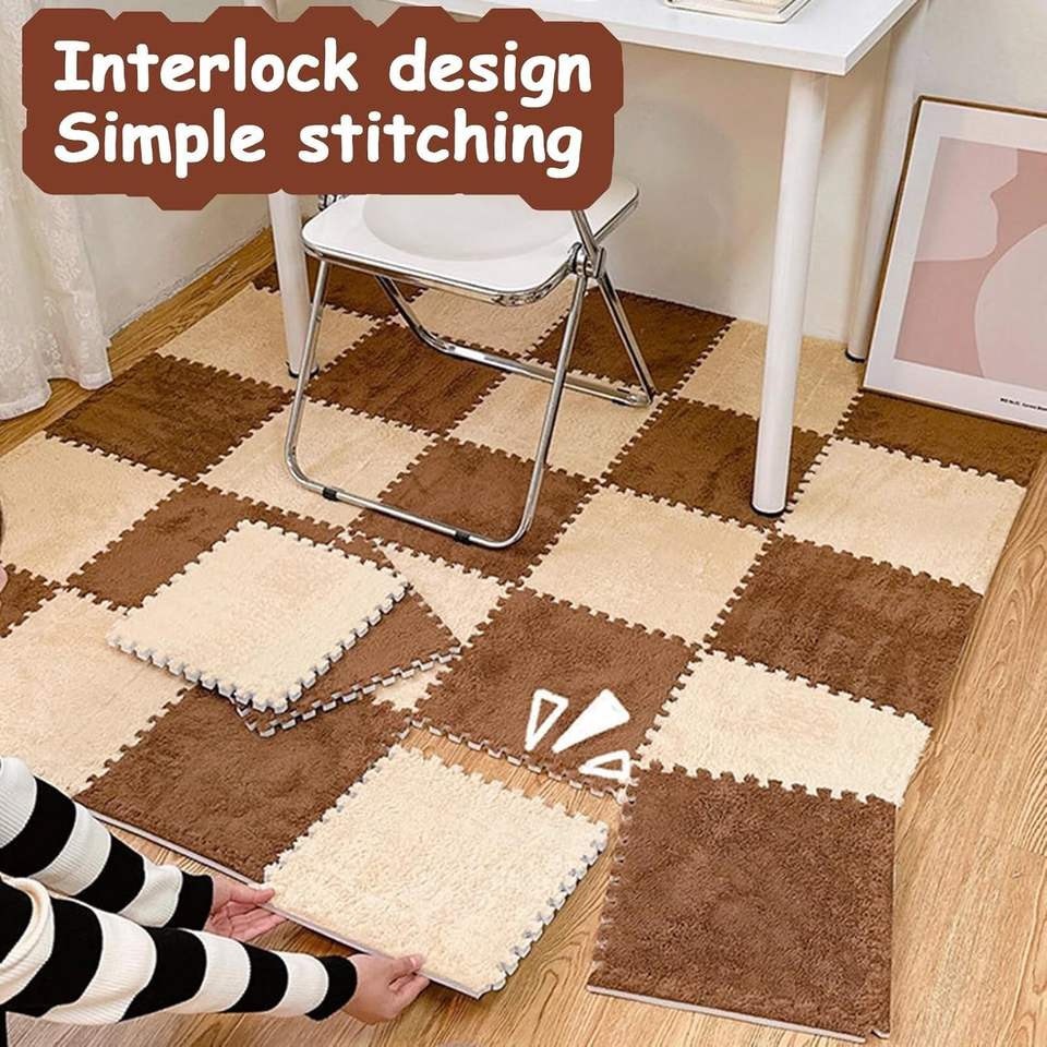 Factory Sale Custom Interlocking Floor Mats Tiles Foam Eva Puzzle Hairy Area Rug Washable Baby Play Mat Plush Carpet