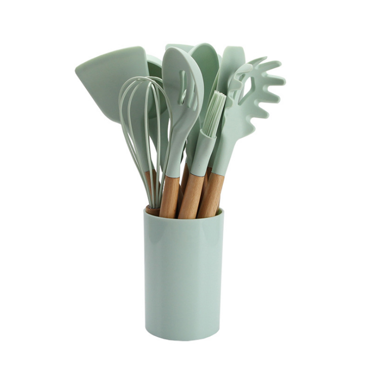 Factory Sale Silicone Gadgets Tools Silicone Cooking Utensils Set With Wooden Handles