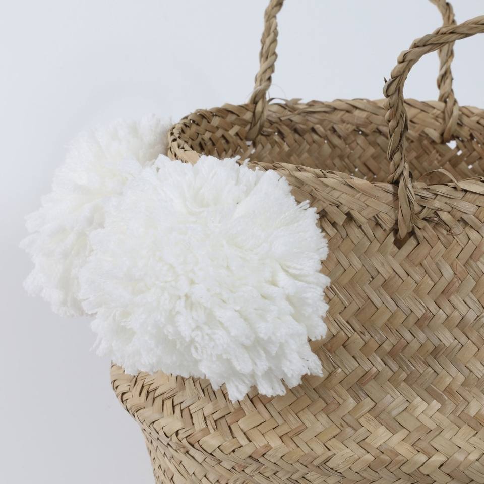 Factory Sell white fluff natural belly baskets seagrass with handles handmade home decor stotage basket flower design