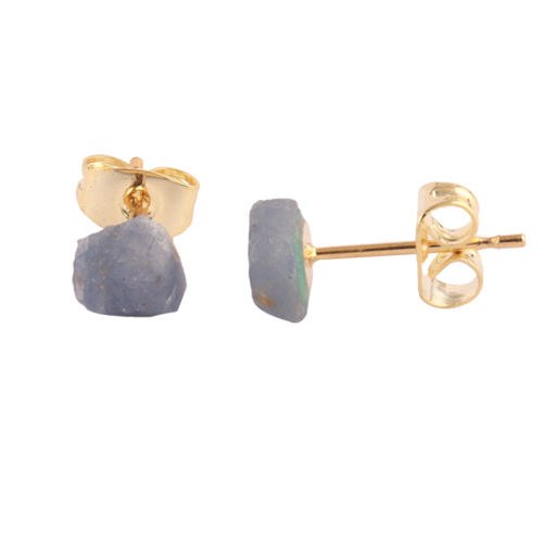 Factory Selling Tiny Raw Rough Blue Sapphire Stud Earrings September Birthstone Gold Plated Push Back Stud Earrings Jewelry Gift