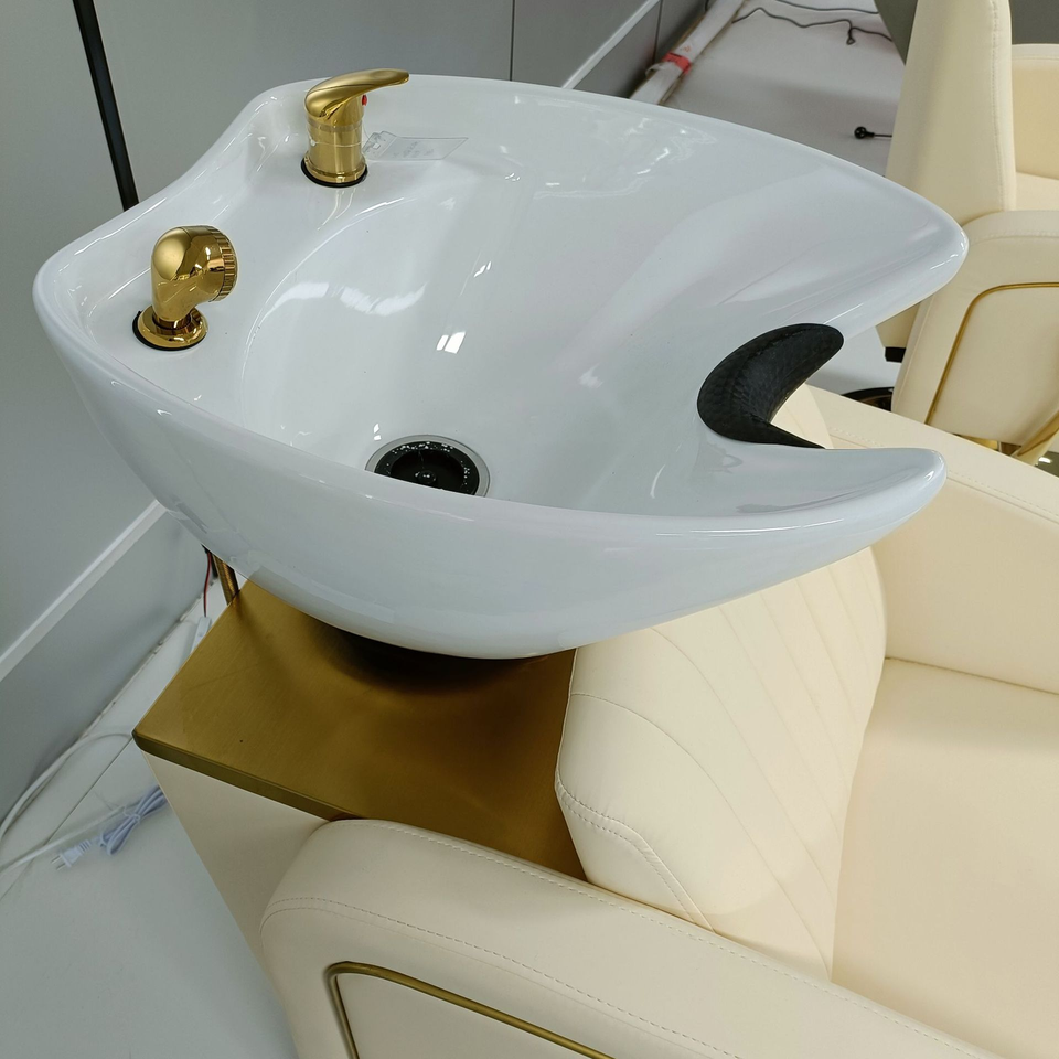 Factory-Supplied Luxury Modern Design Salon Shampoo Station, Salon Hair Wash Chairs PU Leather Shampoo Bed With Ceramic Bowl