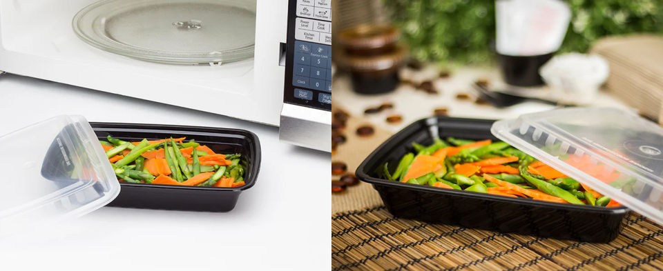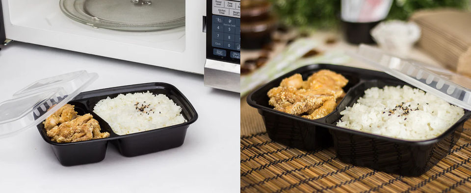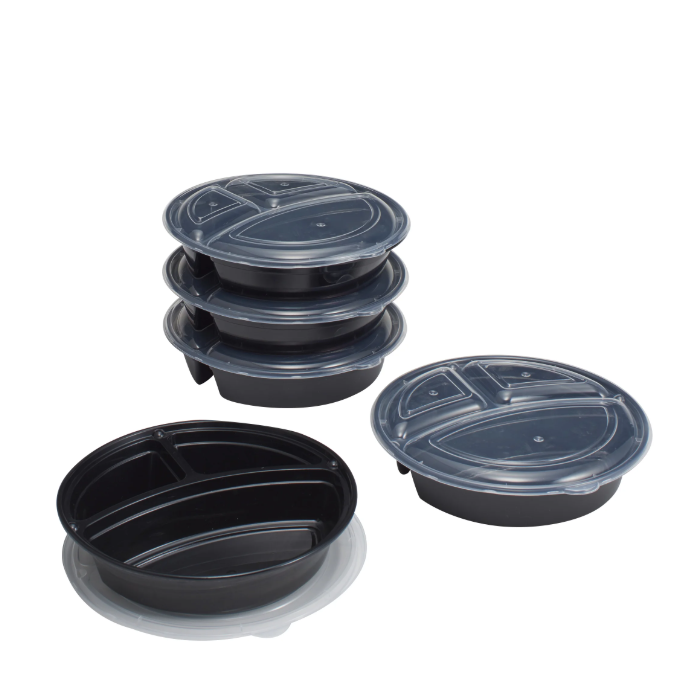 Home Richfull Luxury 32 oz 3 Compartment Plastic Disposable Multi-Use Bento Lunch Box with Lids