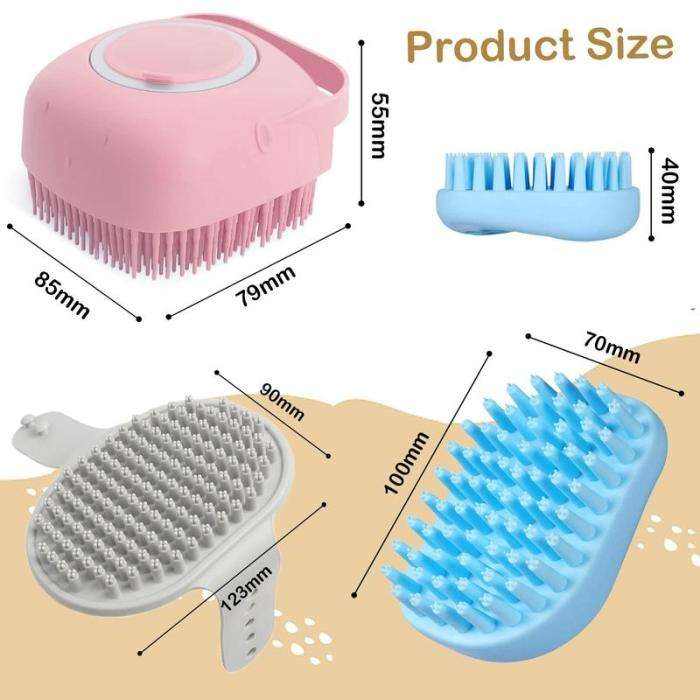 Factory Supplier Pet Massage Brush Dog Cat Bath Brush Comb Hair Pet Fur Grooming Cleaning Brush Soft Shampoo Dispenser