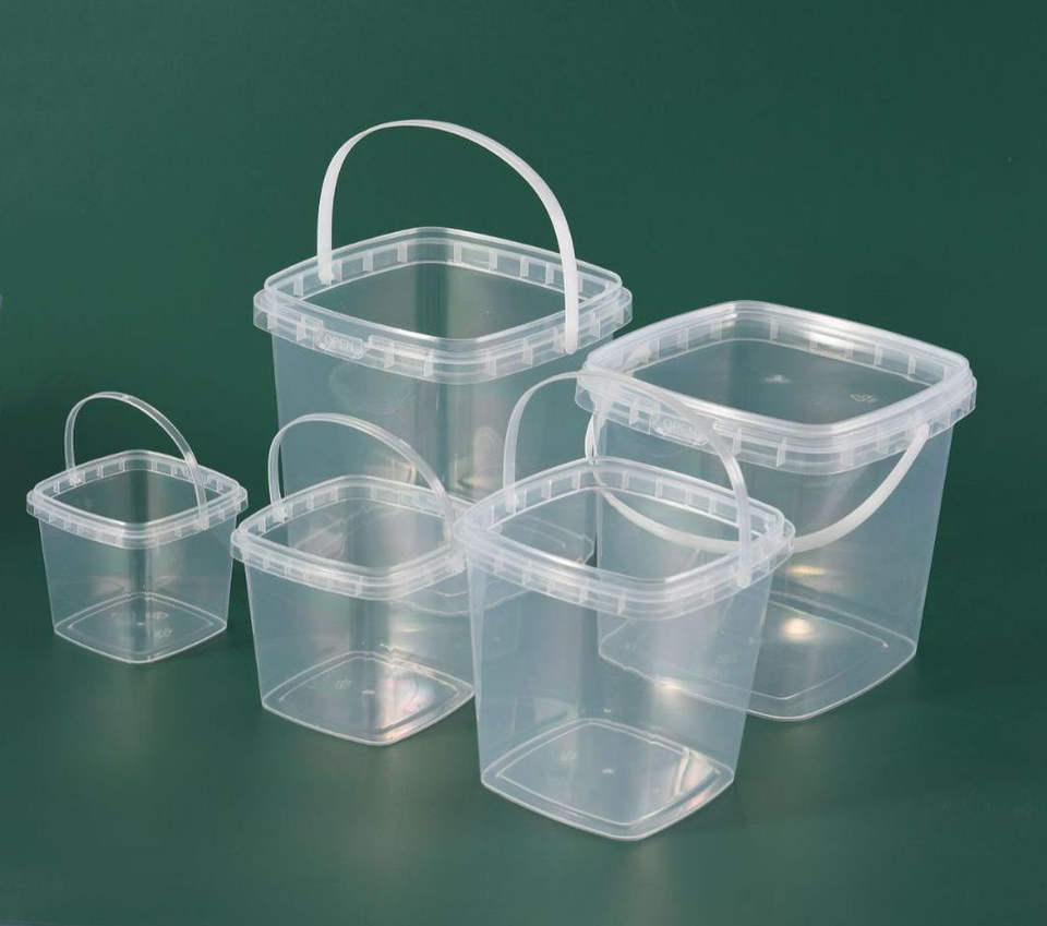 Factory Supplies Square PP Transparent Food-Grade Buckets Handles Lids Custom Colors Printing Logos Leak Proof Eco-Friendly