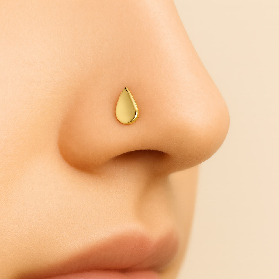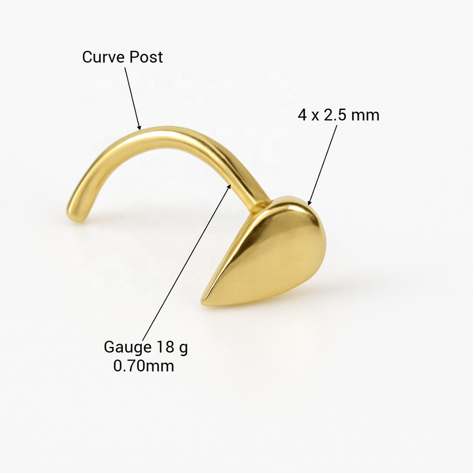 Factory Supply 14K Real Solid Gold Nose Stud 18G Curved Post Flat Teardrop Design Hypoallergenic Fine Piercing Jewelry Wholesale