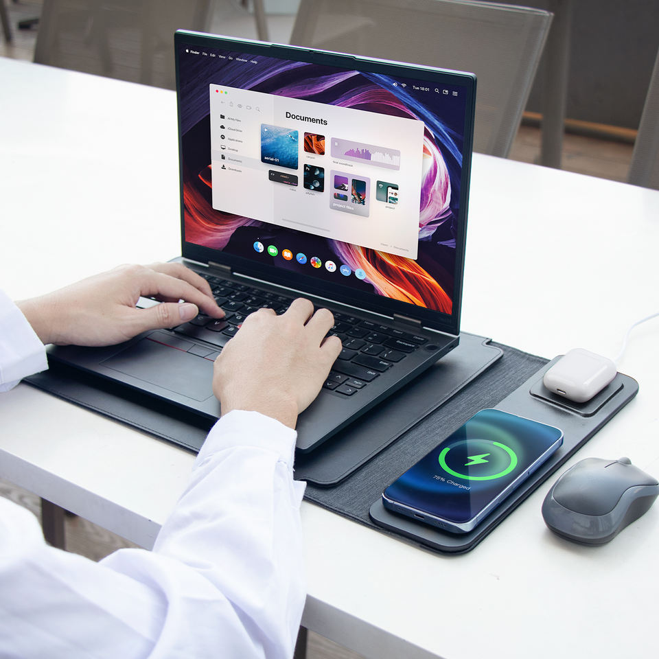 Factory Supply 15-16 Inch Wireless Charging Mouse Mat Laptop PU Sleeve Bag With 15W Mobile Phone Wireless Charger