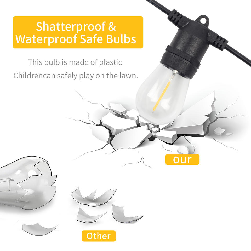 Factory Supply 2W 8.8m 10 Bulbs Outdoor Garden Patio LED Edison Bulb Light Soft Warm White Solar String Lights