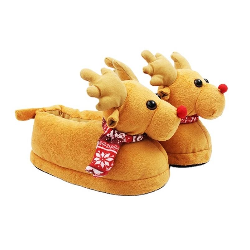 Factory Supply Animal Winter House Christmas Slippers Custom Plush Lady Christmas Reindeer Slippers