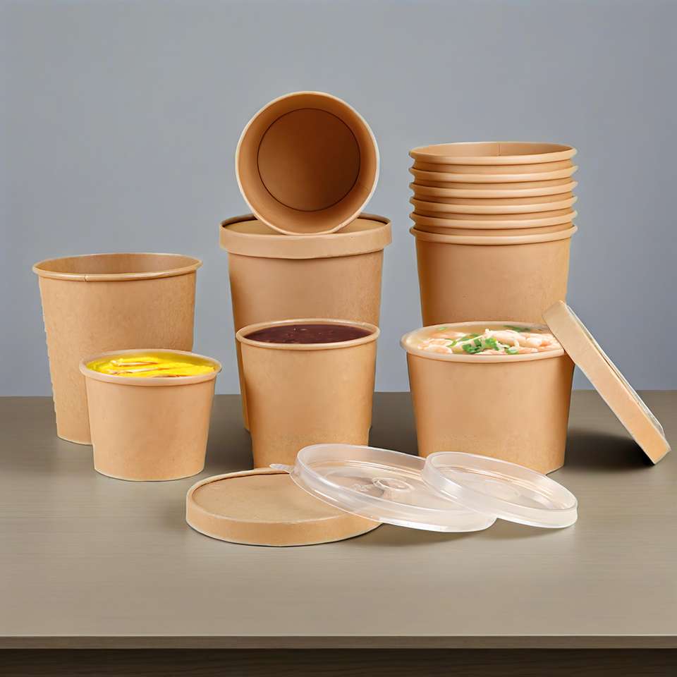 Factory Supply Disposable Porridge Bucket Can Print logo Takeaway Box Kraft Paper Soup Bucket Porridge Cup Paper Bowl Soup Cup