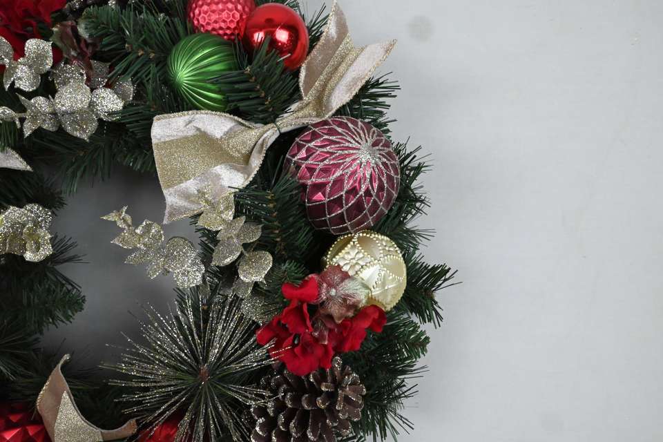Factory Supply Door Hanging Decor Red Ball Christmas Wreath Pinecorn Pvc Christmas Wreaths