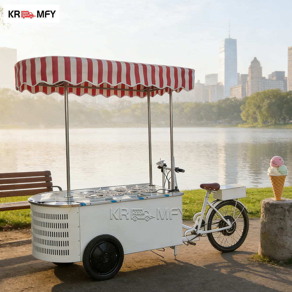 Factory Supply Electric Fiberglass Mobile Kiosk & Fast Food Ice Cream Bike Restaurant Cart