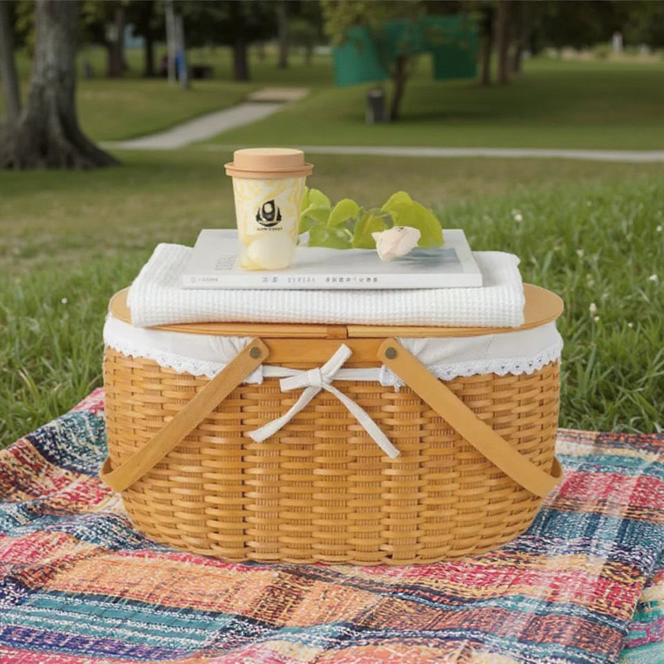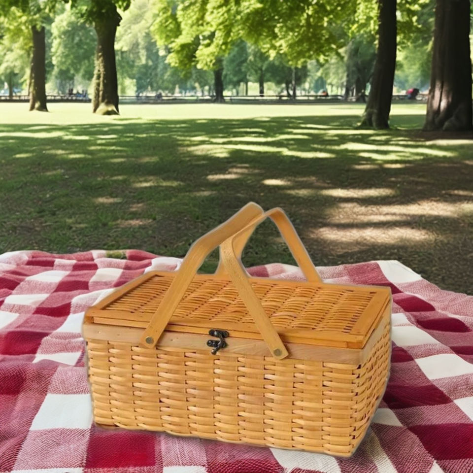 Factory Supply Hand Woven With Handle And Lid Wicker Wood Chip Wholesale Wooden Picnic Baskets