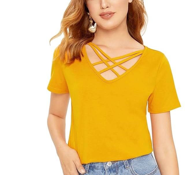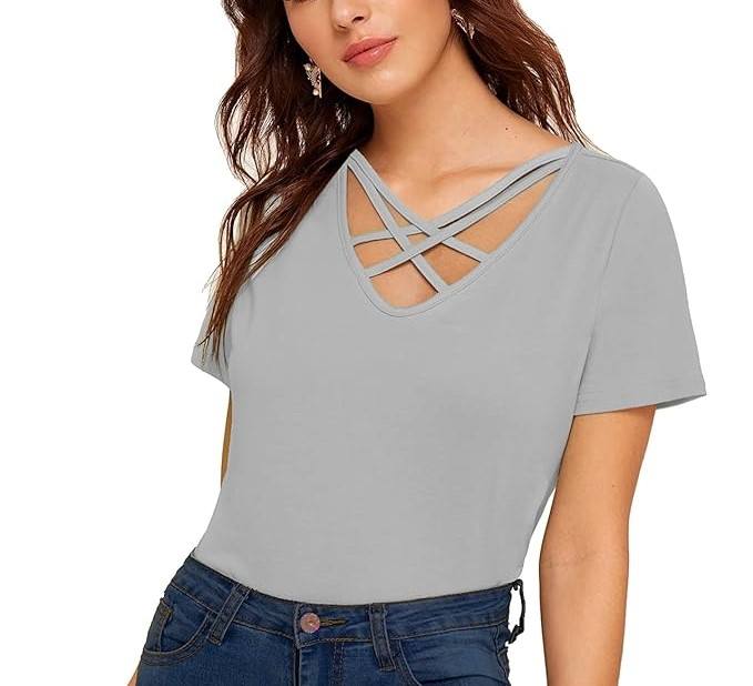Cross V-Neck Cotton Women T-shirt