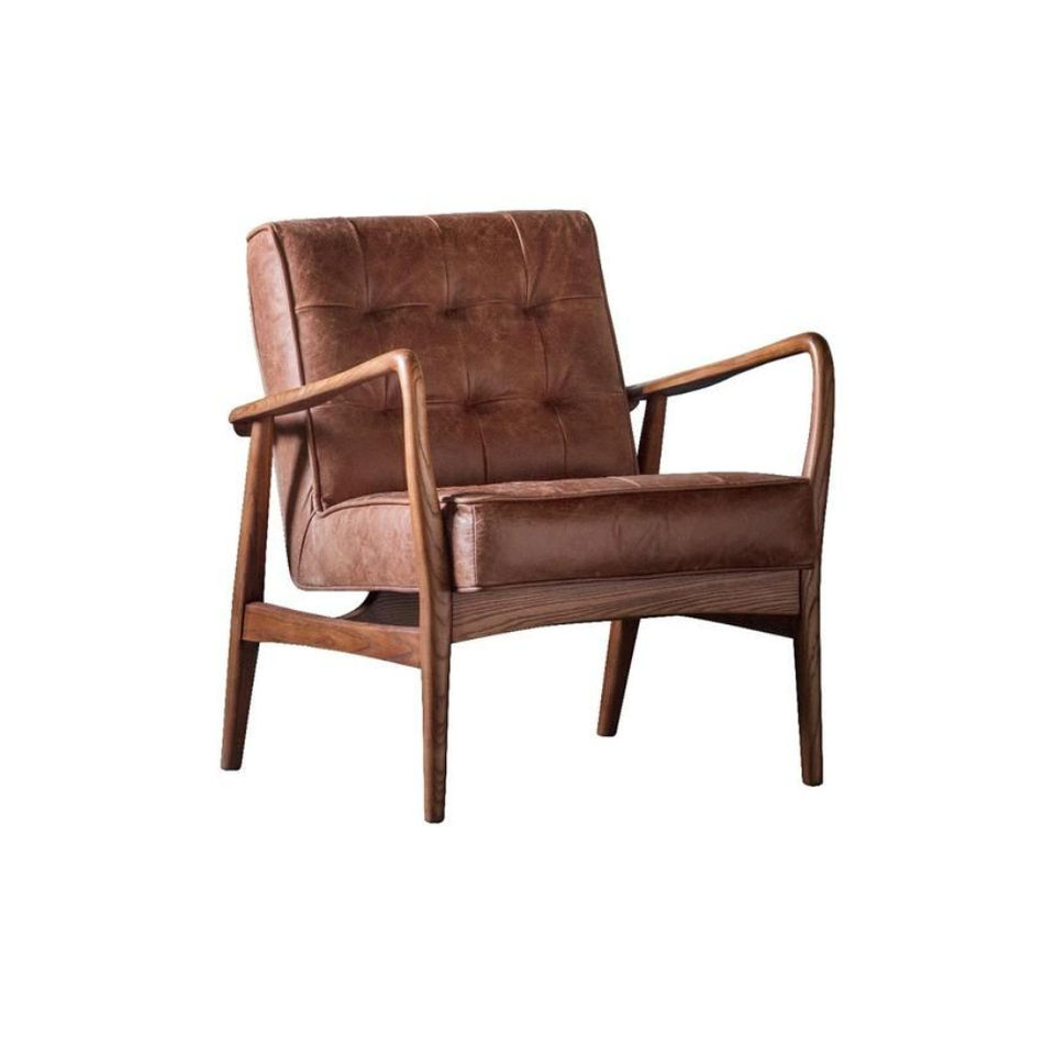 Factory Supply Living Room Sofas Chairs Genuine Leather and Solid Mango Wood Single Seat Sofa Set Furniture for Home Decor Use