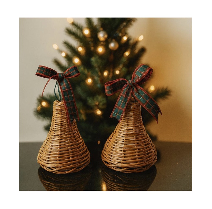 Factory Supply Rattan Wicker Christmas Ornament Set Tree Hanging Decoration Holiday Gift