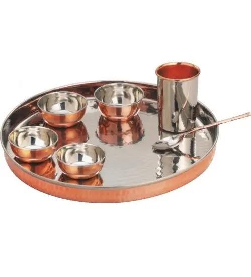 Factory Supply Round Shape Copper Steel Thali Set Hammered Table Top Food Thali Dinner Set in India Wedding Christmas Gift