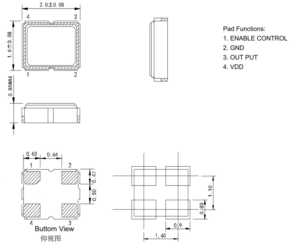 Size / Dimension:2.0 x 1.6 x 0.75 mm