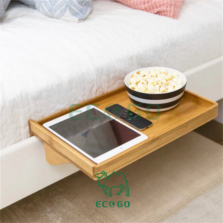 Factory Supply Simple Furniture Removeable Bed Frame Tray Bamboo Bunk Bed Table Bedside Shelf for Bed Headboard