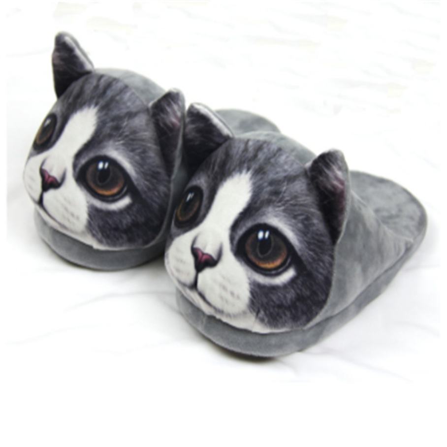 Factory Supply Warm Cotton Animal Slippers Cute Cat Print Winter Man Slipper