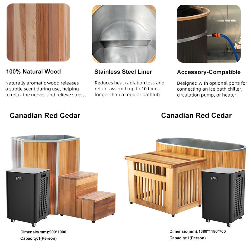 Factory Supply Wooden Cold Plunge Ice Bath Tub With 1/2 Hp Water Chiller Cooling System For Outdoor Home Sauna Spa Cold Therapy