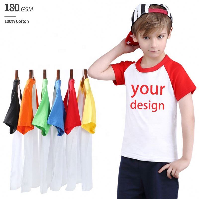 Factory Wholesale 100% Cotton Kids Tshirt Raglan Sleeves Boys T-Shirts Custom Logo