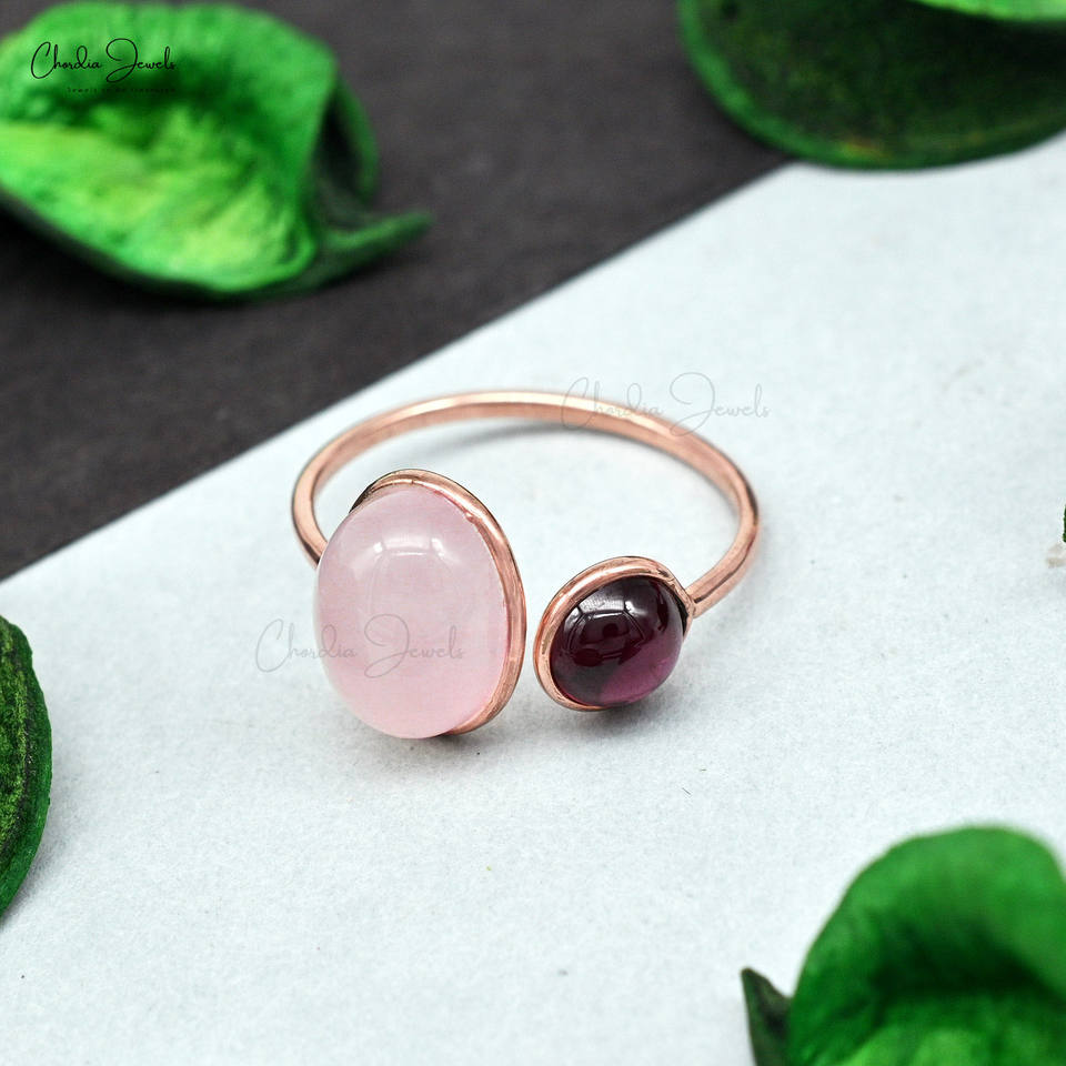 Factory Wholesale 100% Natural Rose Quartz Open Gap Ring 6mm Rhodolite Gemstone Ring 14k Gold Split Shank Ring Handmade Jewelry