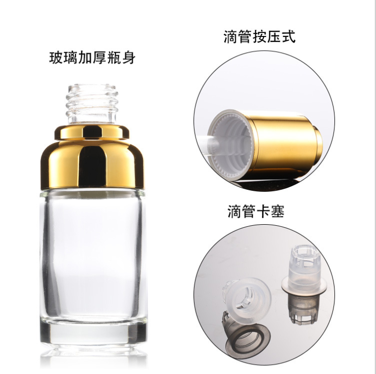 Factory Wholesale 100pcs 20/30/50ml Press Glass Bottles Thick Glass Dropper Bottles Essence Dispensable Silk Screen Printed