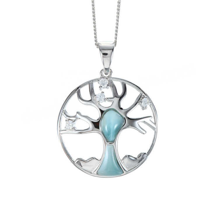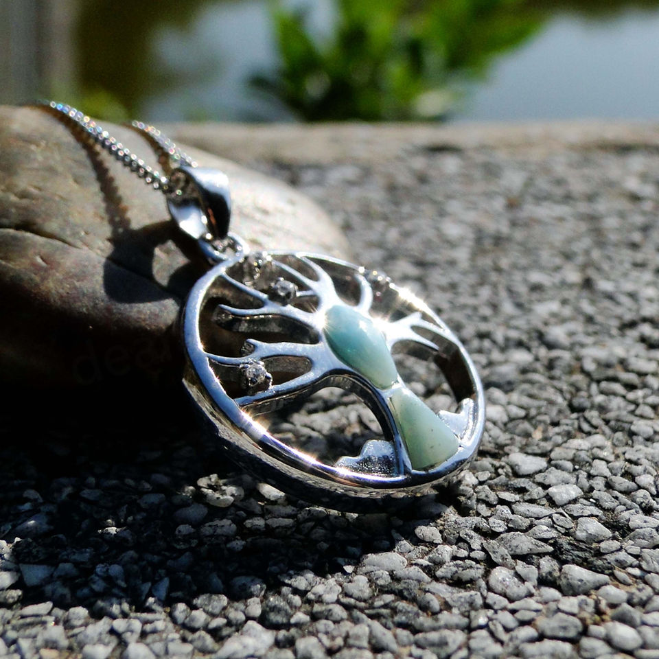 Factory Wholesale 925 Sterling Silver Jewelry Natural Blue Gemstones Larimar Tree of Life Pendant Necklace