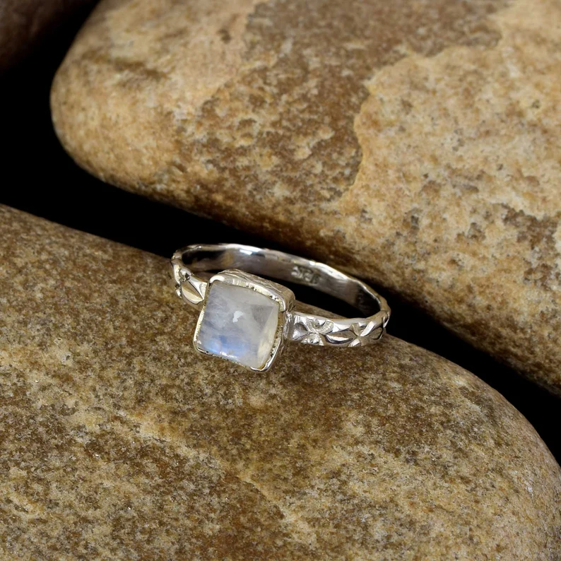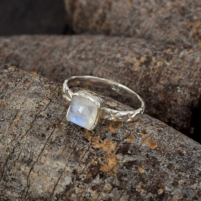 Factory Wholesale 925 Sterling Silver Natural Moonstone Ring Dainty Handmade Square Shape Stacking Ring Factory Price Jewelry
