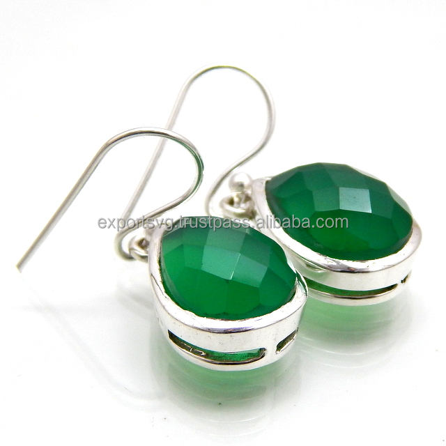Factory Wholesale 925 Sterling Silver Women's Faceted Green Onyx Drop Earrings Beautiful Fashion Jewelry