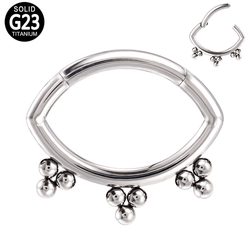 Factory Wholesale ASTM F136 Titanium Clustered Tribal Metal Beads Ball Sticker on Eye Shape Oval Segment Hinged Piercing Ring