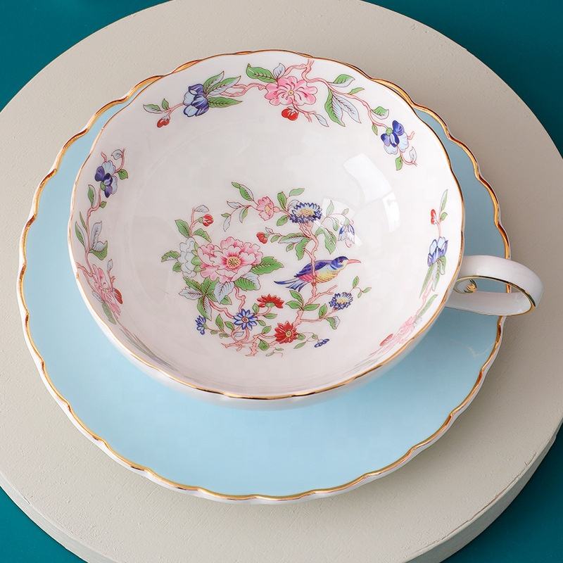 Factory Wholesale Afternoon Tea Coffee Cup Ceramic Cup and Saucer Set Hot Bohemian Business Gifts