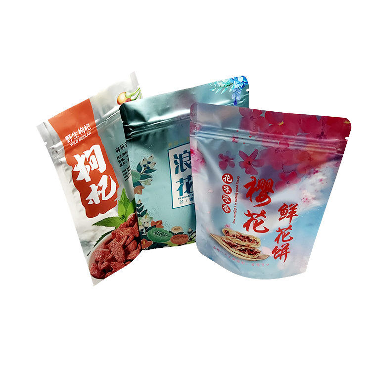 Factory Wholesale Aluminum-Plated Self-Standing Self-Sealing Zipper Bags for Food Soda Crackers Biscuits Bags
