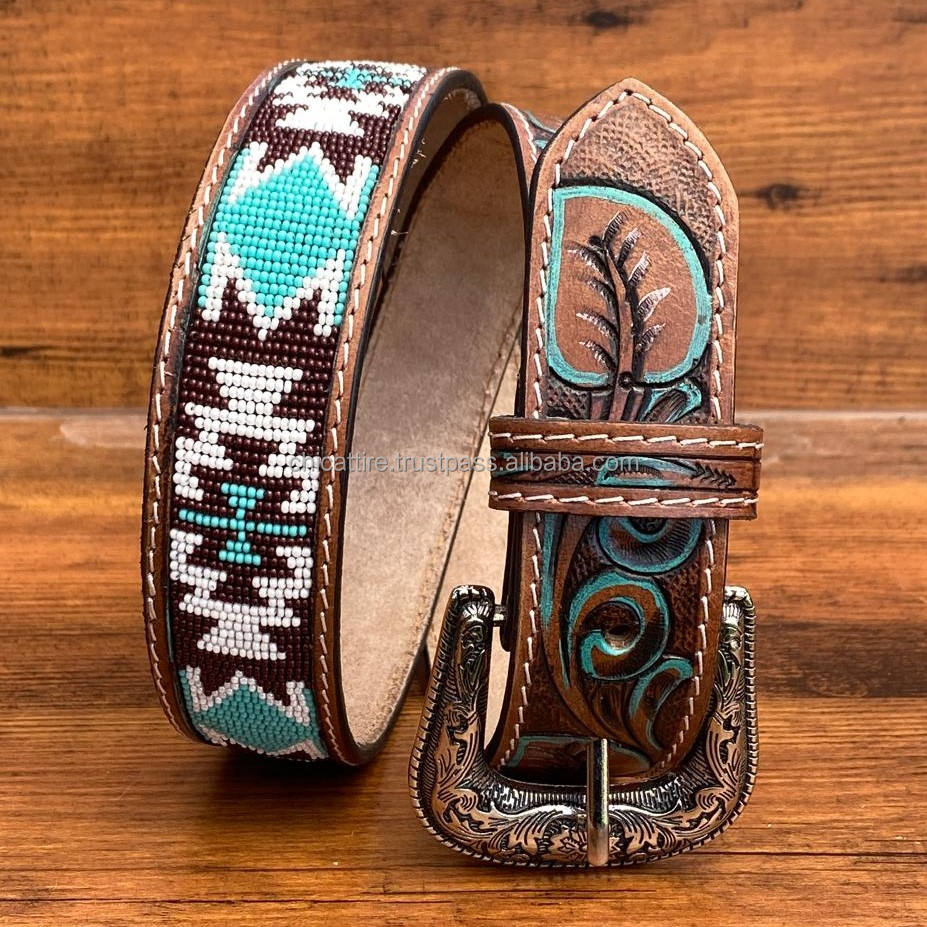 Product name:Designer Tooled Leather Beaded Belts