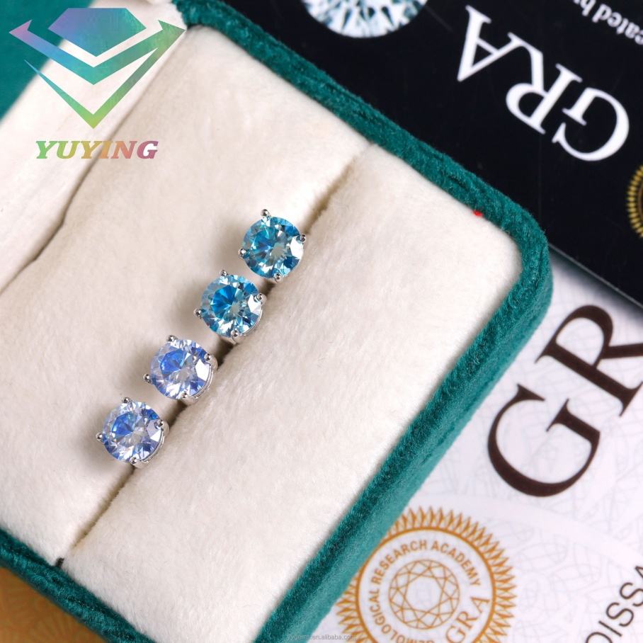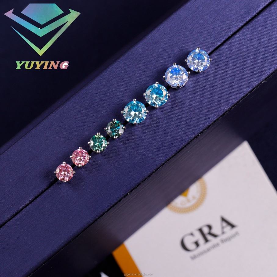 Factory Wholesale Colorful Moissanite Earrings 6.5mm Pink Blue Green Moissanite Diamond Earrings S925 Silver Stud Earrings