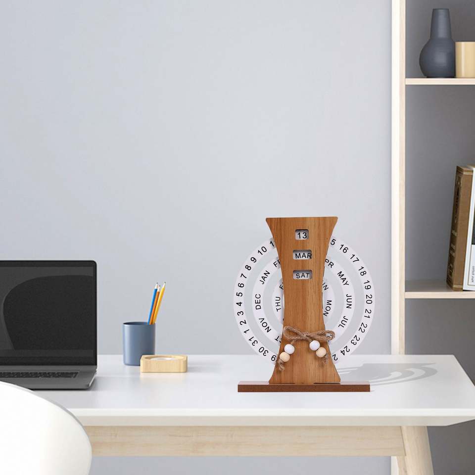Factory Wholesale Creative Wooden Perpetual Calendar Manual Rotation Home Decoration with Art Style Office Desktop Made Taiwan