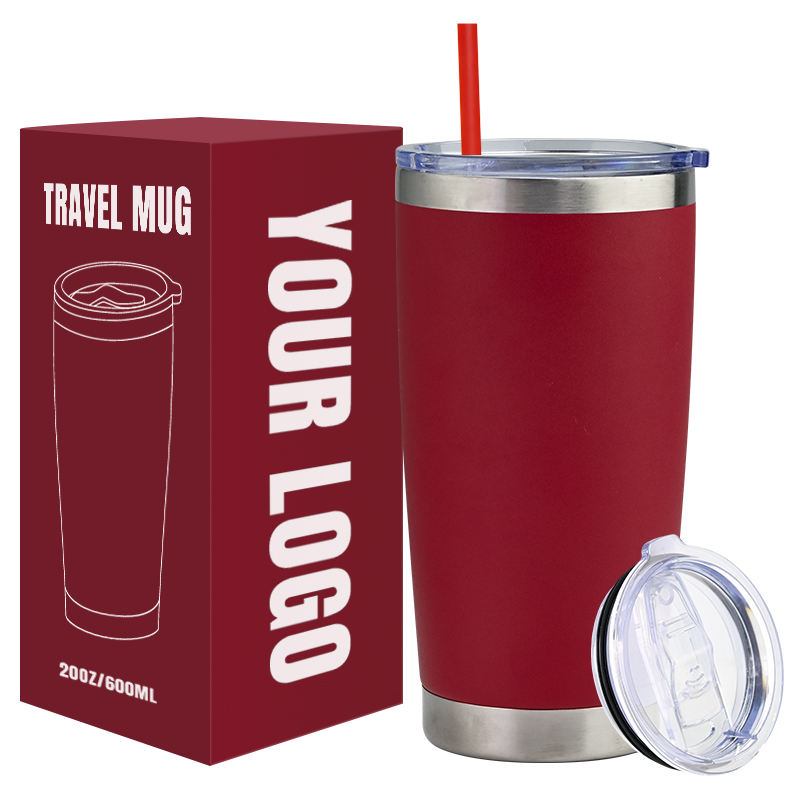 Factory Wholesale Custom LOGO Modern Stainless Steel Vacuum Insulated Powder Coated 20oz Leak-Proof Car Travel Tumbler Cup Lid