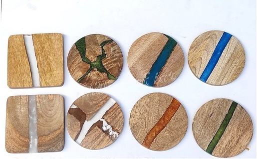 Factory Wholesale Custom Logo Classic Style Round Tea Cup Made of Acacia Cork Bamboo Walnut Beech Epoxy Wood Mats & Pads