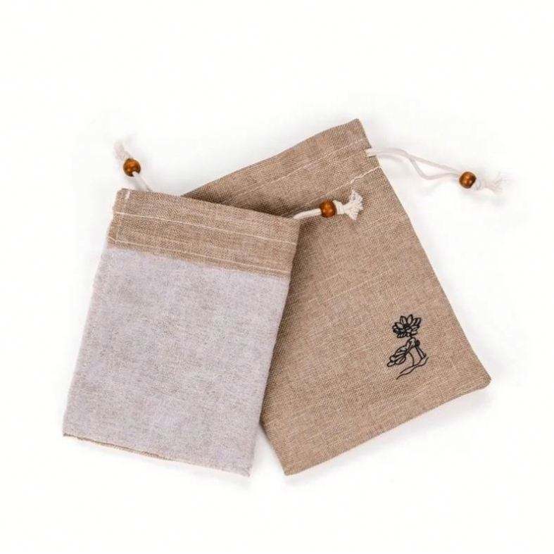 Factory Wholesale Custom Logo Draw String Linen Bag Bundle Pocket Printing Jute Drawstring Gift Bag