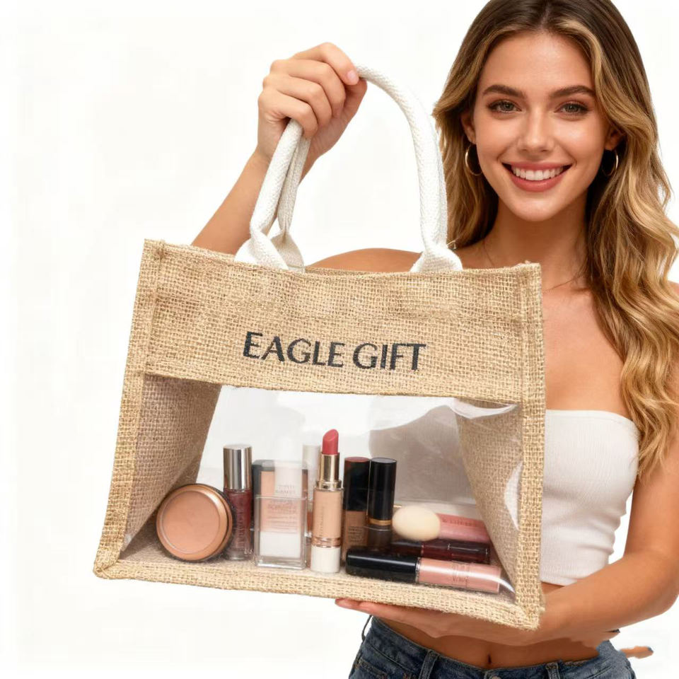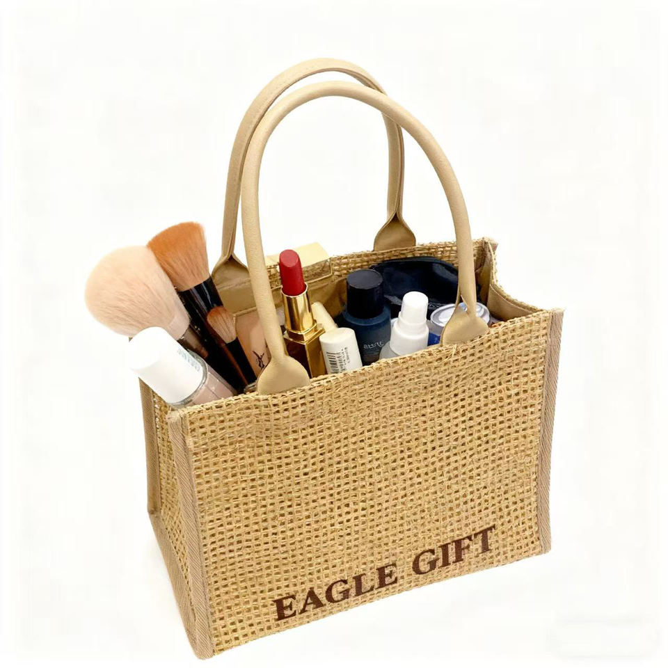 Factory Wholesale Custom Made Large Shopping Solid Color Gift Burlap Waterproof Handbags Beach Bag with Tote
