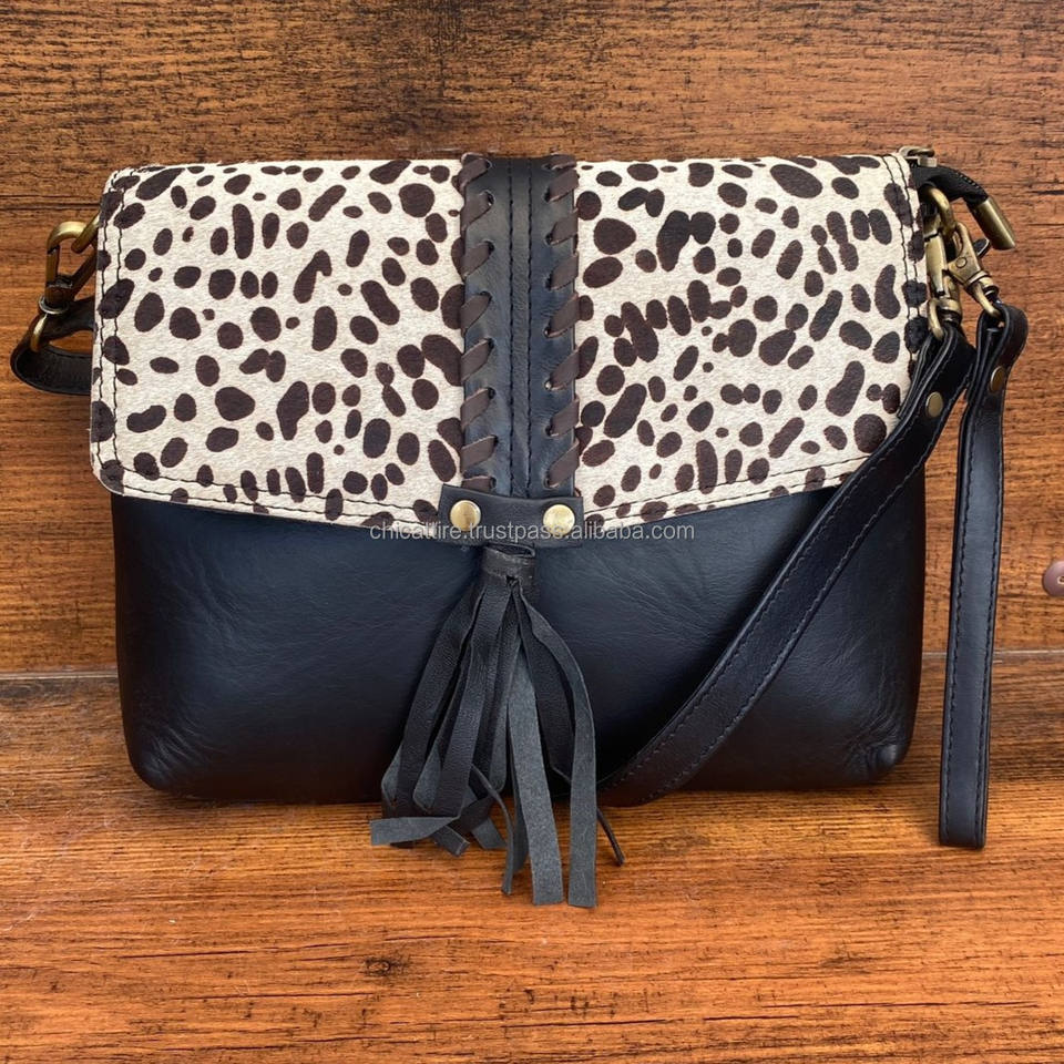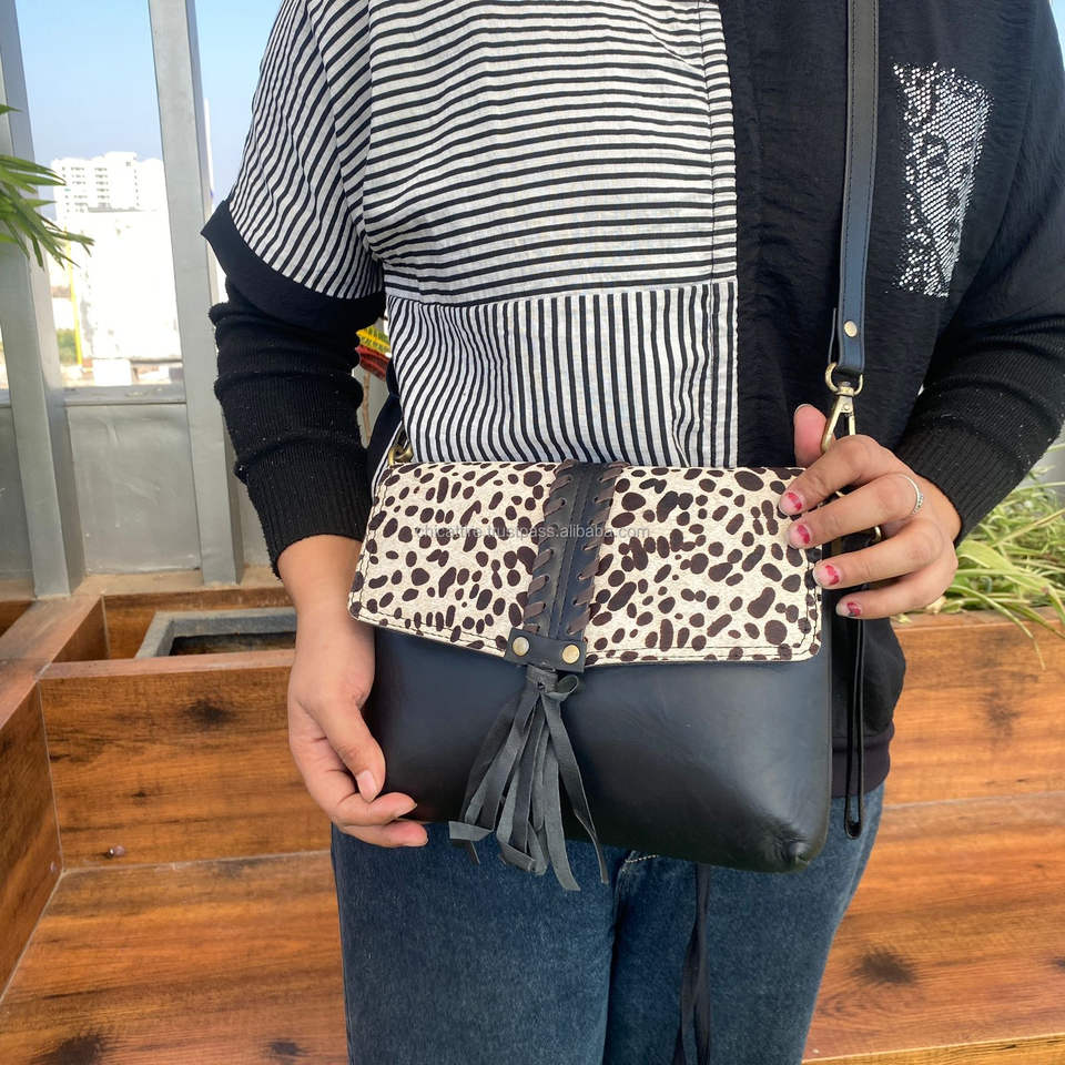 Factory Wholesale Designer Animal Print Genuine Cowhide Leather Tassel Crossbody Bag for Women Fashion Luxury Wristlet Handbags