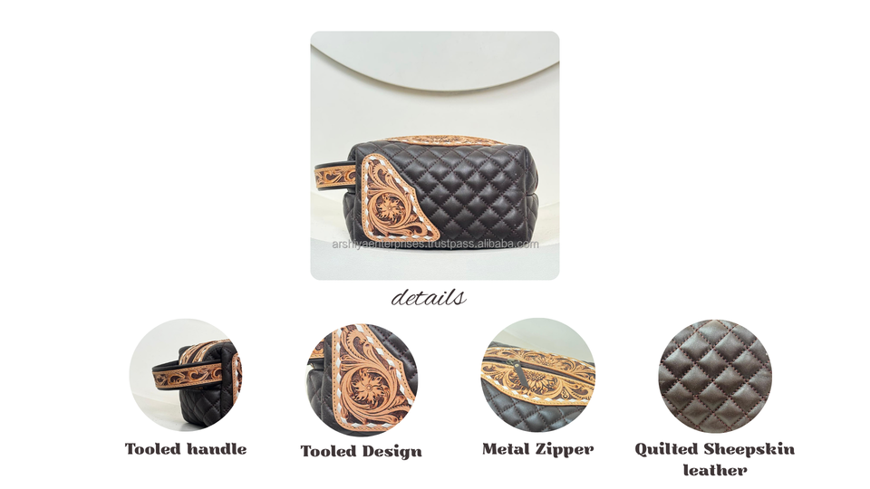 Product Name:Quilted Hand Tooled Leather Women Makeup Bag