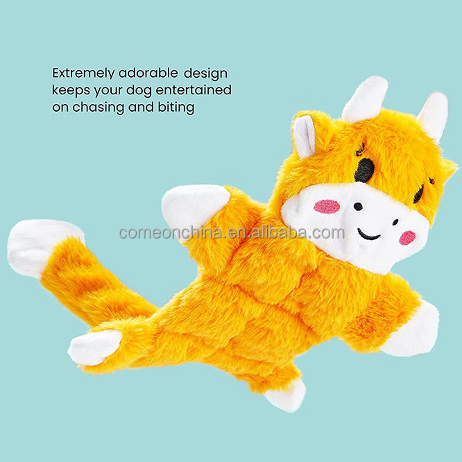 Factory Wholesale Durable Cartoon Dog Crinkle Plush Squeaky Chew Toy Interactive Teeth Cleaning No Stuffing